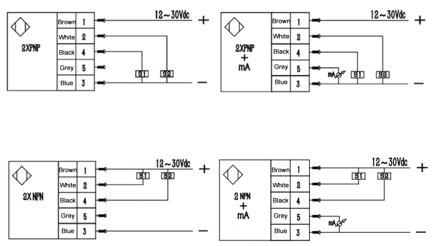 | 3 | Dos salidas de conmutación + pulso | |||||||||||||||||||||||||||||||