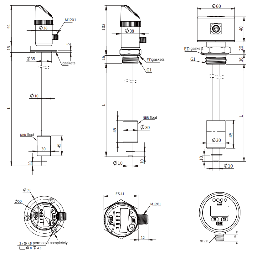 | X | Material del flotador: acero inoxidable 304 (no disponible con salida analógica) | |||||||||||||||||||||||||||||||||||