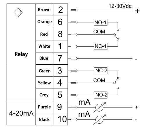 2 salidas de relé + salida analógica de 4–20 mA |