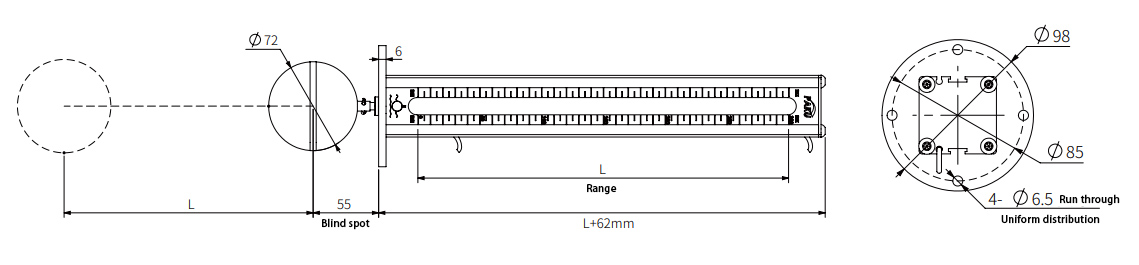 Se puede instalar en la parte superior o inferior, con una estructura compacta y robusta, rendimiento fiable, buena repetibilidad, larga vida útil y resistencia a altas temperaturas.